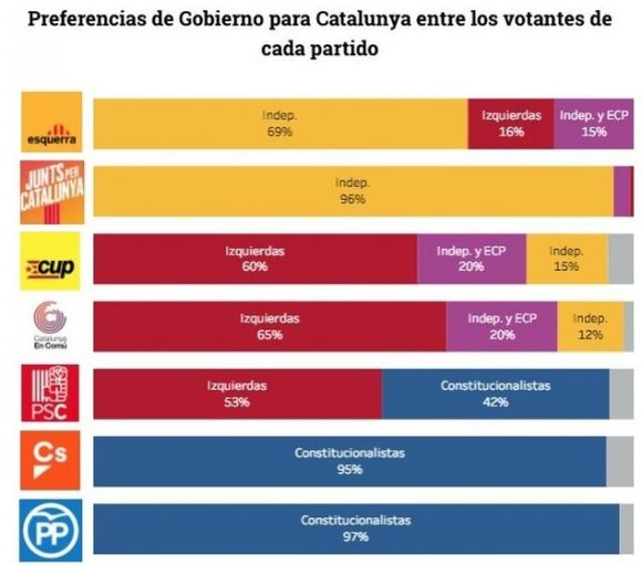 La encuesta publicada hace dos días por Celeste-Tel sigue aportando datos interesantes. En este caso son las preferencias de pactos postelectorales según el partido al que se vote.