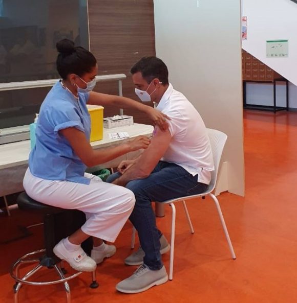 El presidente Pedro Sánchez recibe la segunda dosis de la vacuna contra la Covid.