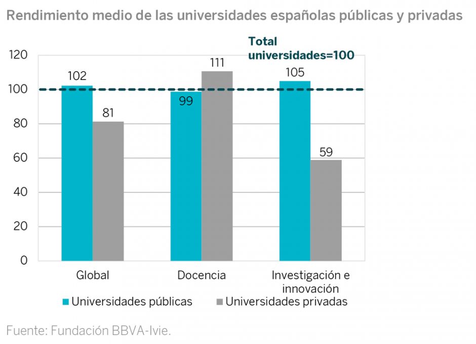 Las universidades públicas destacan claramente en generación de conocimiento, pero las privadas tienen otros puntos fuertes a posteriori.