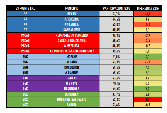 Participación en algunos municipios históricamente inclinados hacia los distintos partidos…