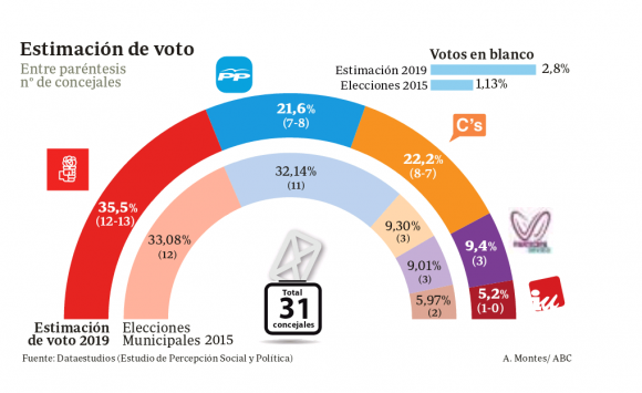 Sevilla: sorpasso de Ciudadanos al PP, que queda tercero.