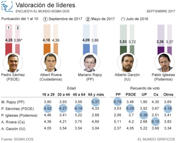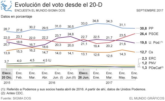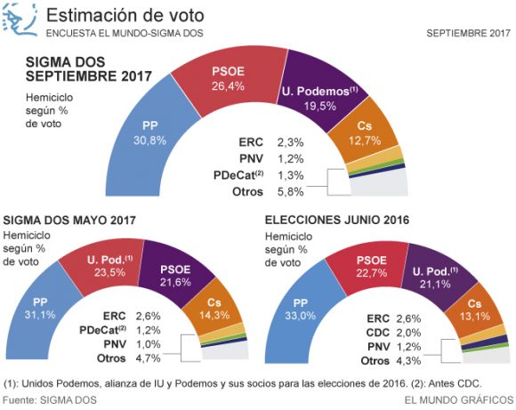 Sondeo electoral de Septiembre difundido hoy por el diario El Mundo y elaborado por Sigma dos: