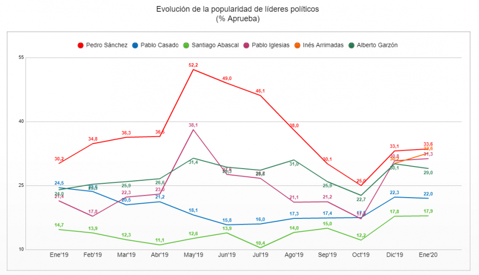 Respecto a las elecciones generales, los equilibrios se mantienen, con una subida apreciable de UP y bajadas de Vox y el PSOE.
