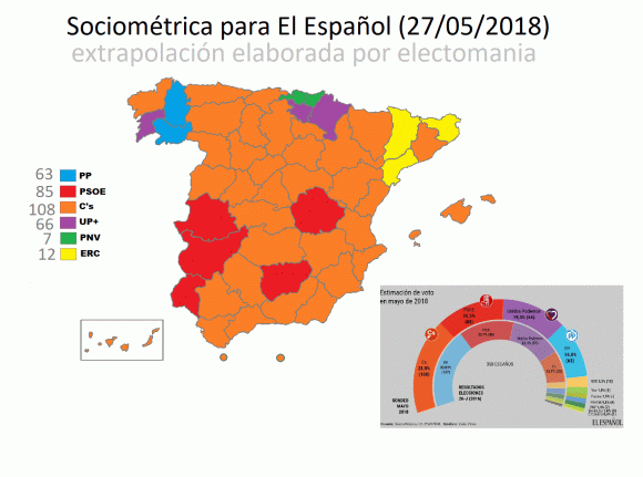 Extrapolación a escaños y fuerza más votada en cada provincia: