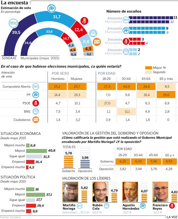 Sondeo de Sondaxe para La Voz de Galicia para la ciudad de Santiago de Compostela:
