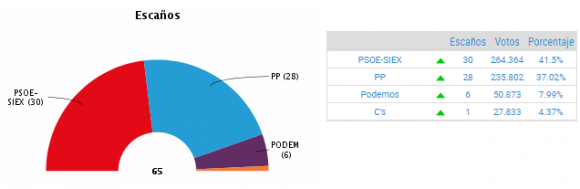 Asamblea de Extremadura en las anteriores elecciones (gráfico de La Nueva España)