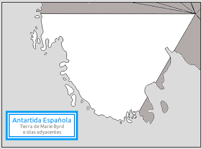 - Tierra de Marie Byrd [Territorio Continental Antártico Español]: Situado entre 90ºO y los 150ºO hasta 60ºS