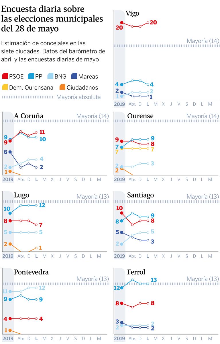 Tracking diario de La Voz de Galicia para las siete grandes ciudades gallegas: