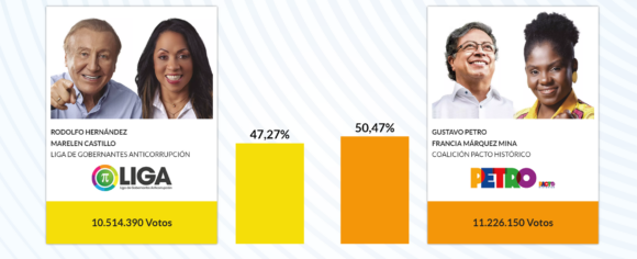 De confirmarse estos resultados, Petro lograría una histórica victoria para la izquierda, que por primera vez logra acceder a la Casa de Nariño, sede de la Presidencia de Colombia.