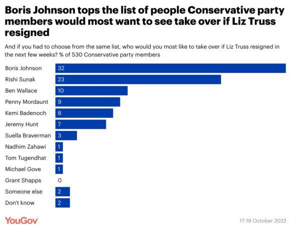Pero el dato que destaca sobre los demás es cuando se pregunta quién quieren que la sustituya al frente del Gobierno y… Boris Johnson es el preferido para sucederla.